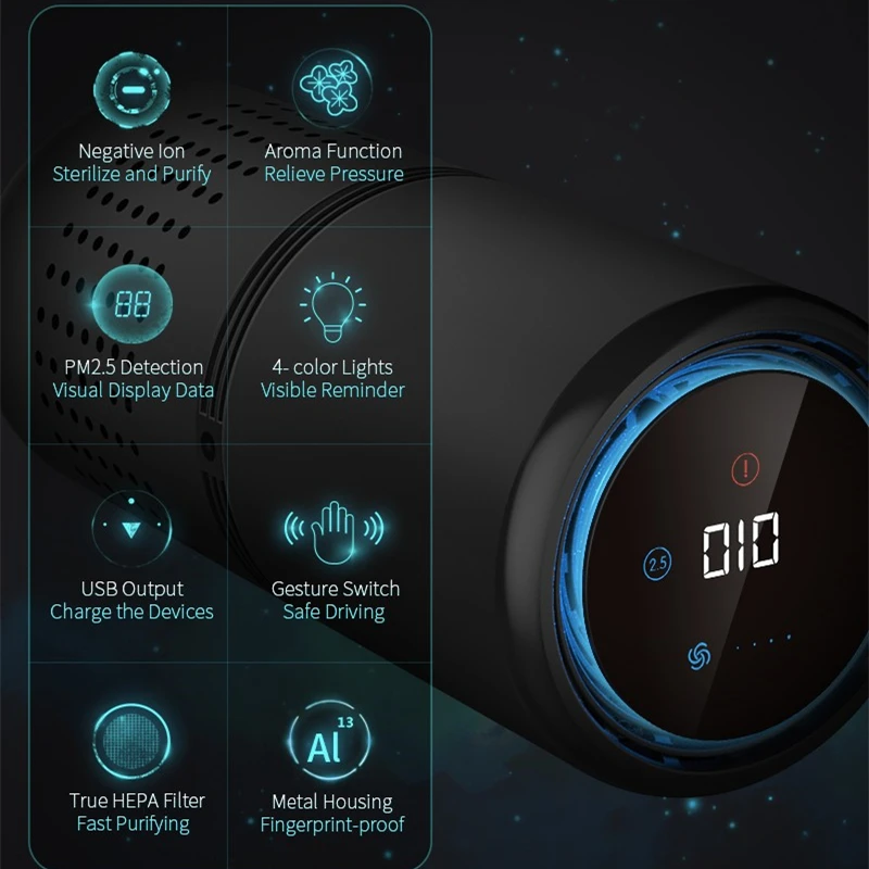 Galery for SHODA Smart Car Air Purifier Mini Cup Shape Hepa Filter Air Cleaner Anion PM2.5 Remove Formaldehye